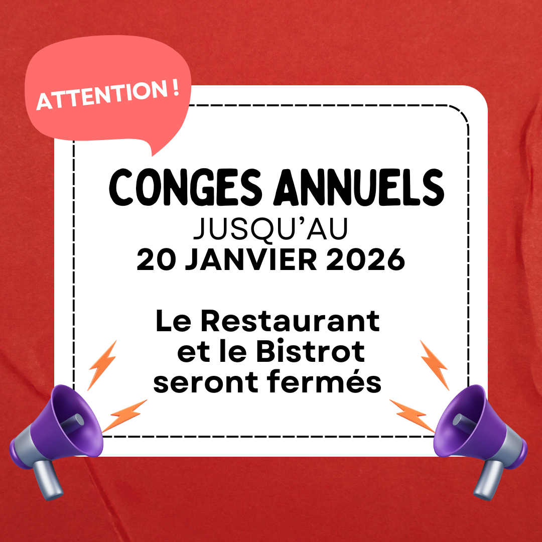 Le Restaurant et le Bistrot sont fermés pour Congés Annuels jusqu'au 20 janvier 2026